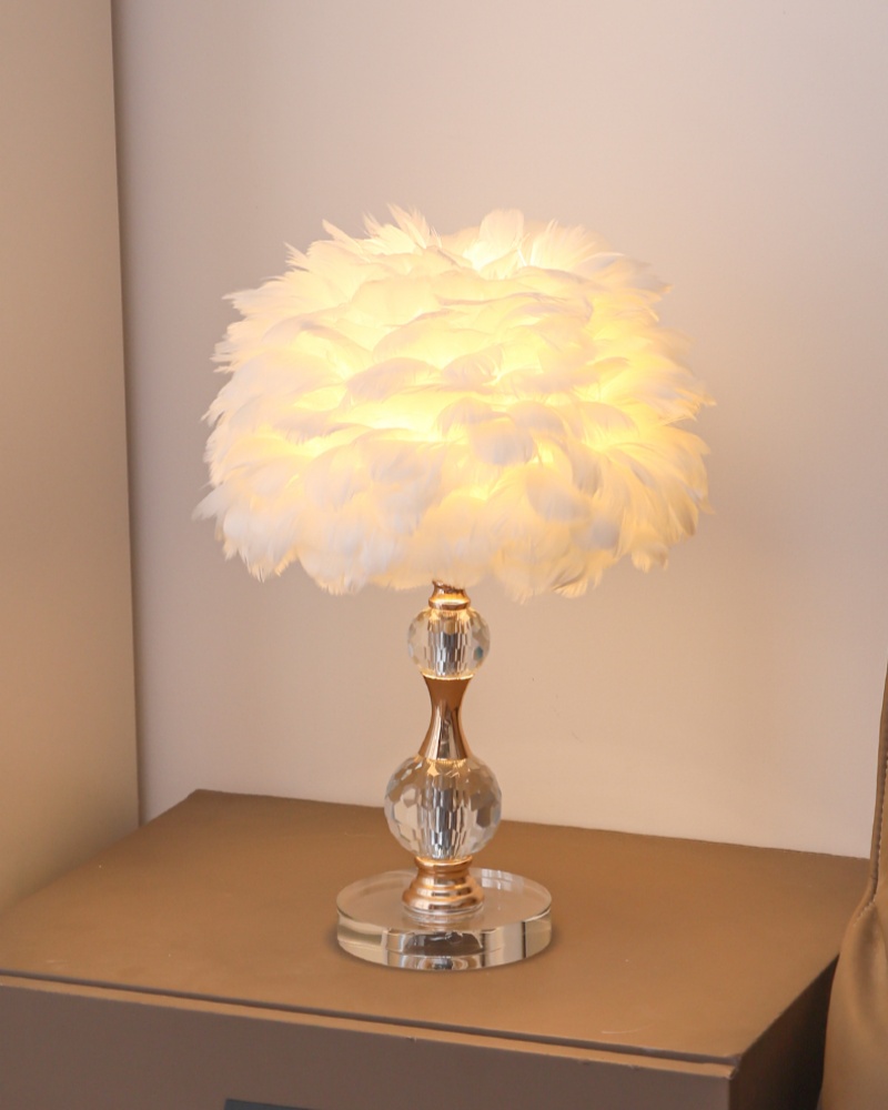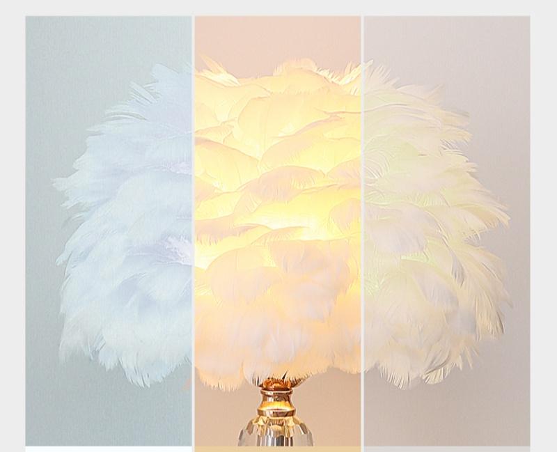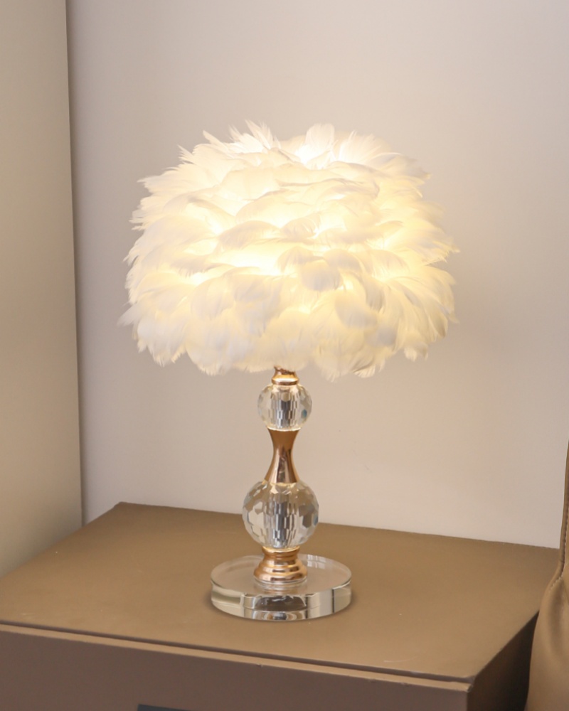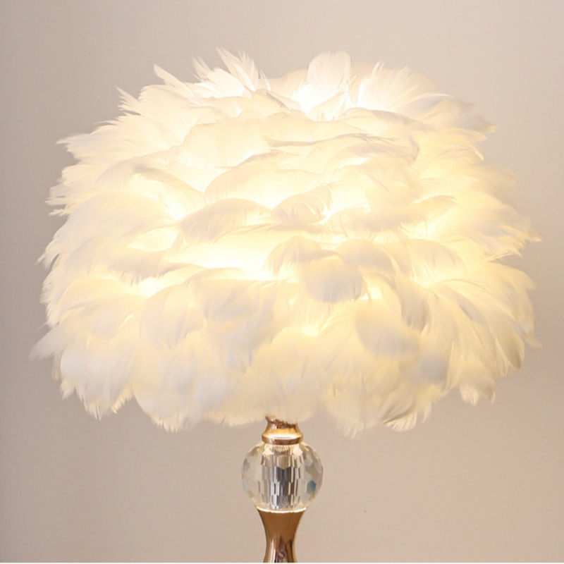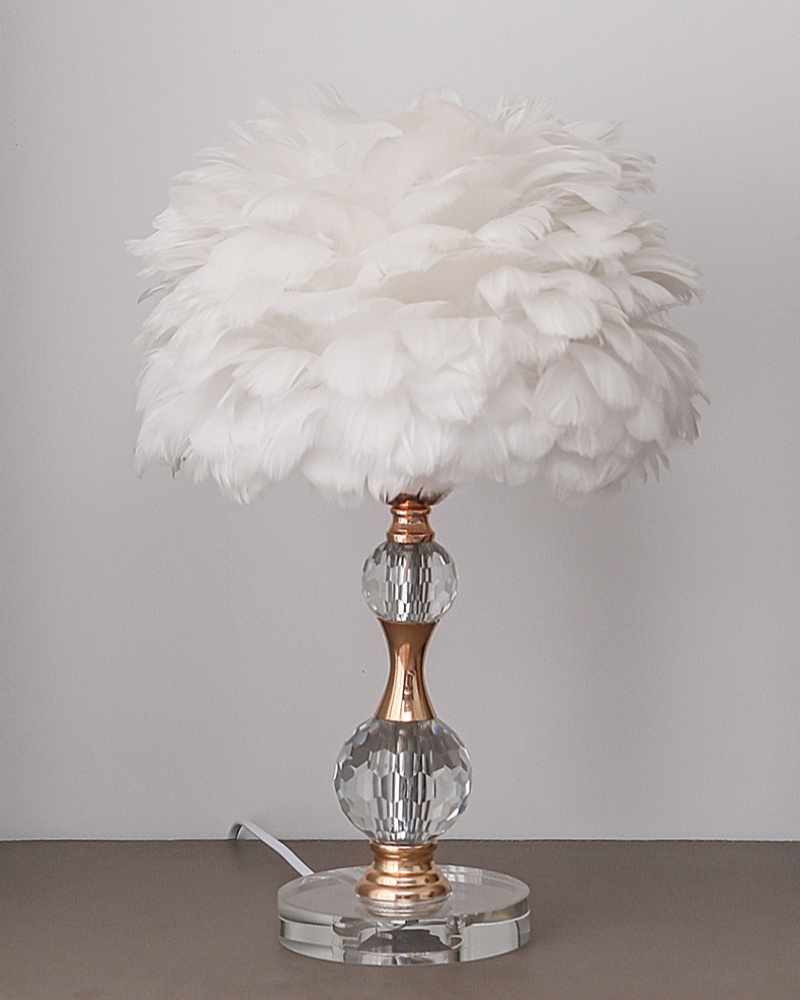 - Versatile and Attractive Application: Perfect for a variety of spaces, this table lamp enhances the aesthetics of living rooms, bedrooms, and dining rooms. Its elegant crystal and feather design adds a refined and contemporary touch to modern or minimalistic interiors. Whether as a feature light for your living room or a decorative night lamp, this table lamp serves as both functional lighting and a charming decor piece.