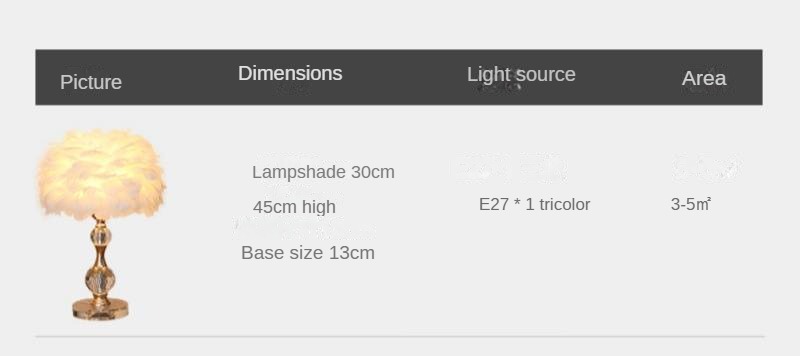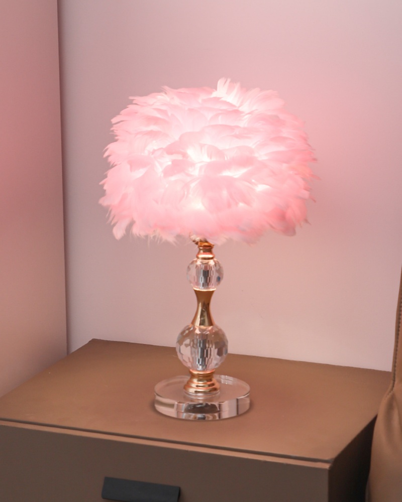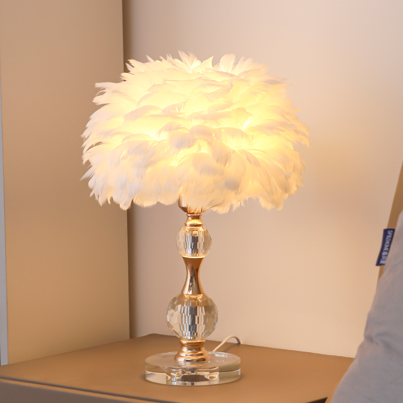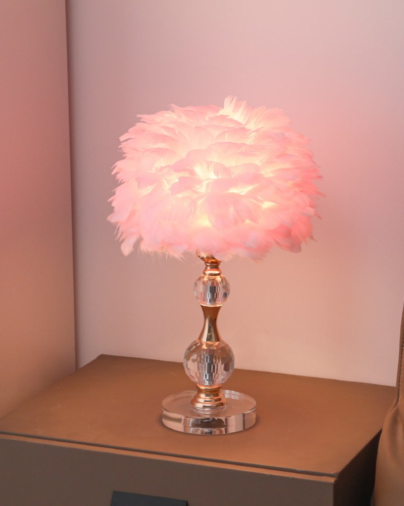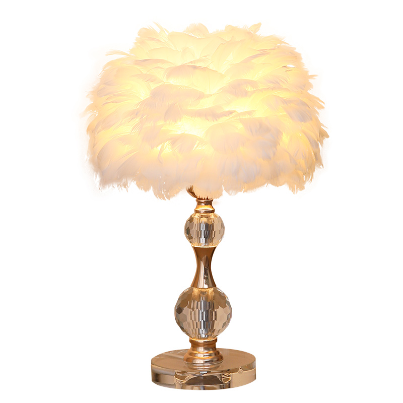 - Versatile and Attractive Application: Perfect for a variety of spaces, this table lamp enhances the aesthetics of living rooms, bedrooms, and dining rooms. Its elegant crystal and feather design adds a refined and contemporary touch to modern or minimalistic interiors. Whether as a feature light for your living room or a decorative night lamp, this table lamp serves as both functional lighting and a charming decor piece.