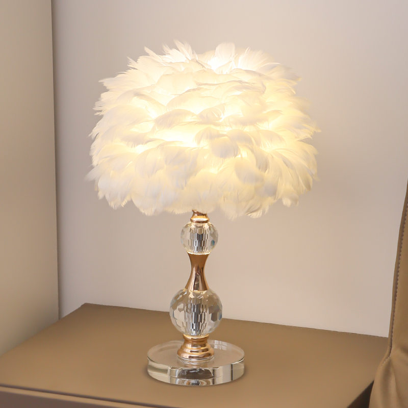 - Premium Materials for a Chic Look: Crafted with high-quality materials, this table lamp features a beautiful hardware and crystal base with a feathered lampshade. The combination of glossy crystal and delicate feathers creates a luxurious effect that enhances your decor. The sturdy crystal base offers both elegance and durability, ensuring this table lamp remains a statement piece in your space for years to come.