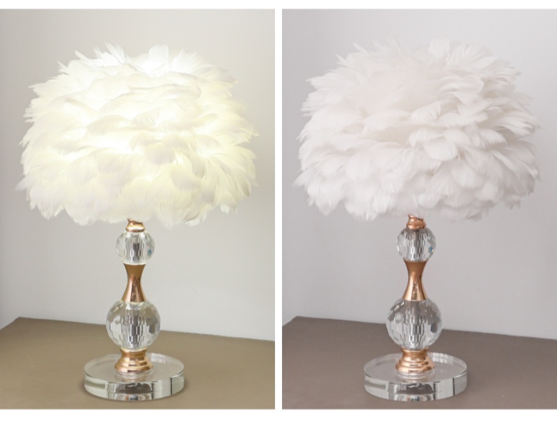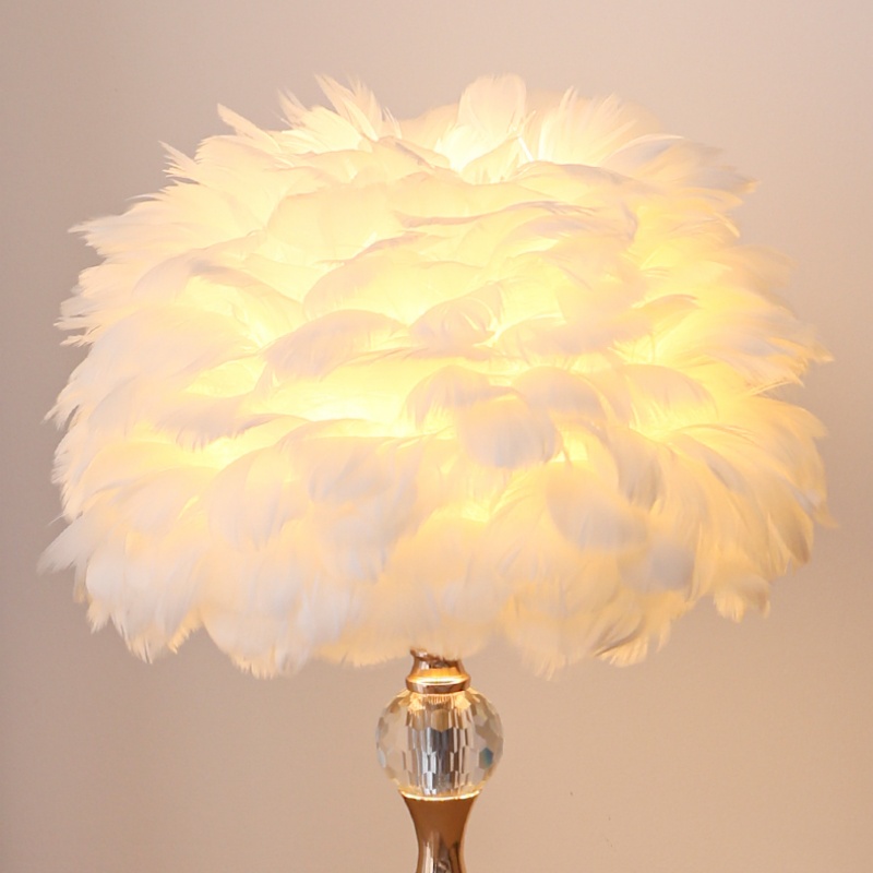 - Elegant Feather Design: This exquisite table lamp showcases a luxurious feathered shade that creates a soft, warm glow, making it an elegant addition to any room. The fluffy feathers are delicately arranged to offer a unique, stylish look that is sure to capture attention. Its refined design makes it perfect for modern spaces, adding a touch of glamour to your home, dining room, restaurant, or tea room.