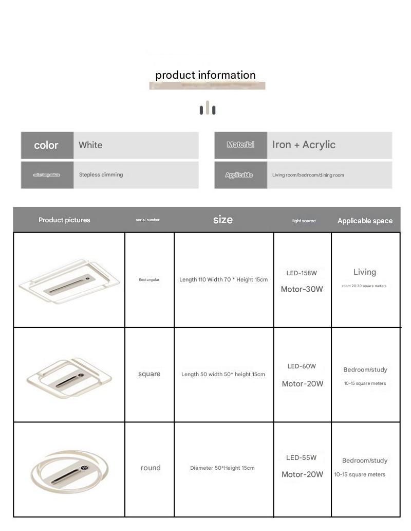 • Simple Installation and Low-Maintenance Durability: Designed for straightforward installation, this Ceiling Fan Lamp can be easily mounted using standard tools. The combination of iron, acrylic, and PC materials ensures long-lasting performance with minimal maintenance required, offering practical convenience for homeowners and business operators alike.