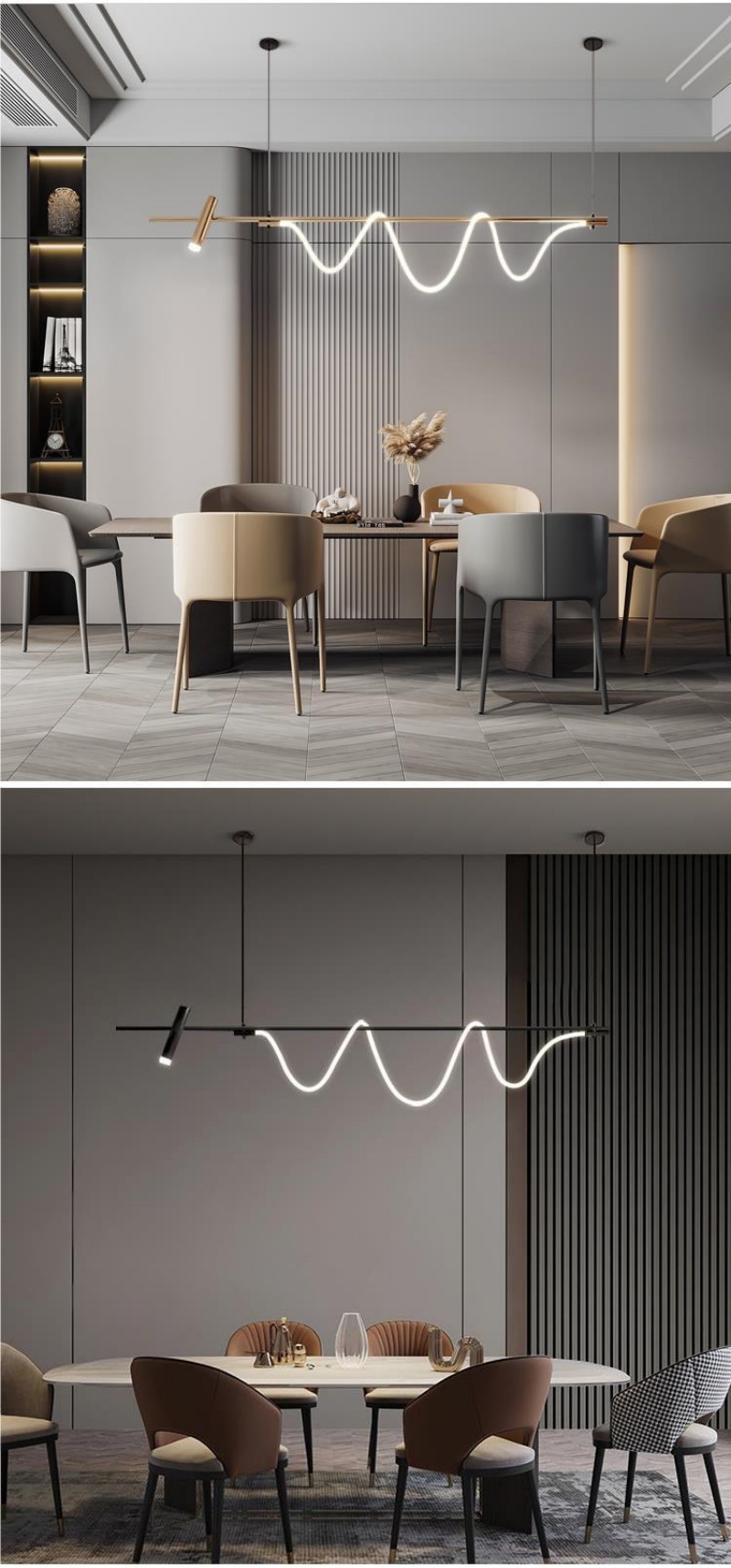 • Sleek Linear Tube Design: This linear tube silicone pendant lamp features a clean, modern silhouette that brings contemporary elegance to any space. Its elongated tubular form provides elegant illumination perfect for dining areas, kitchen islands, and commercial settings, making this pendant lamp both a functional light source and a striking design element. The minimalist design ensures this pendant lamp enhances various interior styles without overwhelming the space.