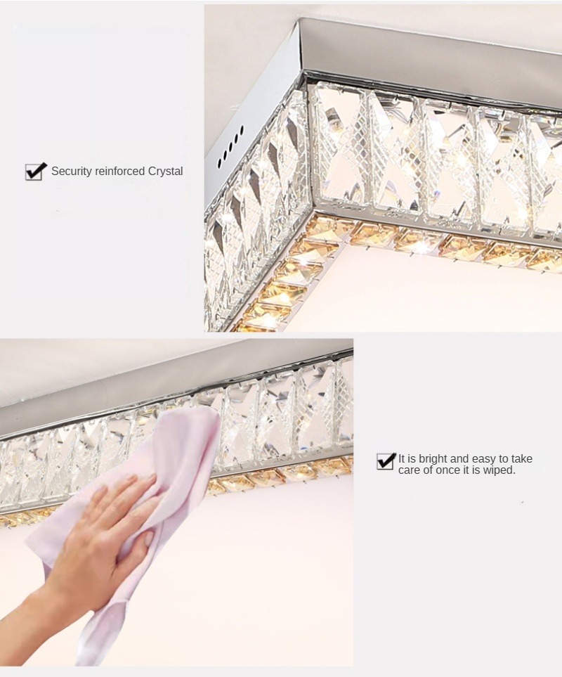 - A Sleek Composition of Chrome and Crystal: Expertly crafted from stainless steel, precision-cut crystal, and clear acrylic, this ceiling light exudes contemporary elegance in a polished chrome finish. The durable steel frame provides structural integrity with a cool, metallic sheen, while the crystal and acrylic elements work in harmony to refract and diffuse light beautifully. This stunning fixture creates a captivating play of light, adding a layer of crisp texture and luminous sophistication that enhances dining rooms, studies, and commercial spaces alike.
