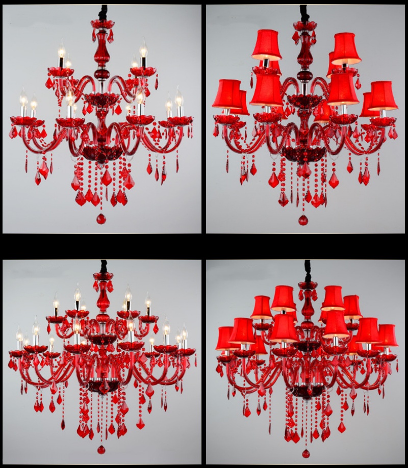 - Dramatic European Elegance: This Red Crystal Candle Chandelier makes a bold and passionate statement with its rich Garnet Red crystals and classic European silhouette. This captivating chandelier evokes the opulence of a grand ballroom, designed to become the breathtaking centerpiece of a formal dining room or to infuse a luxury hotel lobby with a sense of romantic drama. Its multi-arm candelabra design, adorned with fiery red crystals, creates a warm, dynamic glow that transports any space to a bygone era of sophisticated glamour, making this lighting fixture an unforgettable focal point for stately interiors.