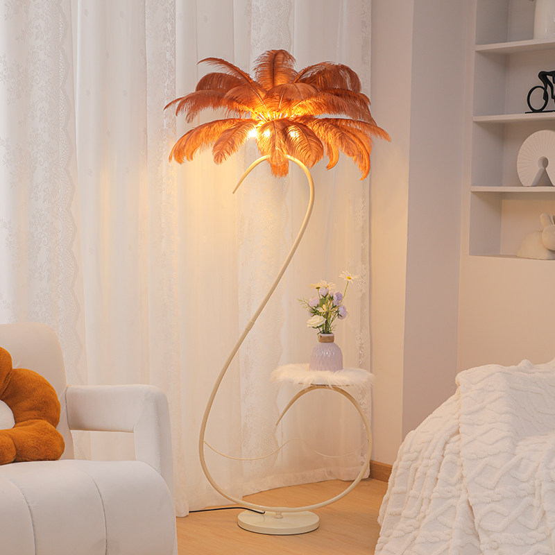 - Design: This elegant floor light combines modern simplicity with a touch of artistic charm. The soft, feathered lampshade adds a unique, airy appeal to the piece, while the sleek metal base enhances its contemporary design. The delicate feather detailing creates a gentle glow, providing ambient lighting perfect for relaxation or entertaining. Its timeless aesthetic makes it a versatile choice for any home, whether placed in the living room, dining room, restaurant, or tea room.