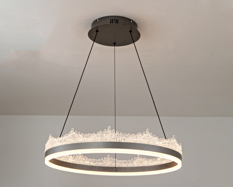 - Sleek Modern Aesthetics with Refined Colors: The Silver Gray Resin Red Acrylic Pendant Lamp features a clean, circular silhouette that embodies modern simplicity. This elegant Pendant Lamp is designed to be a standout piece, available in sophisticated Silver, versatile Gray, and a statement-making Resin Red, allowing it to seamlessly integrate into various interior themes from living rooms to hotel lobbies.
