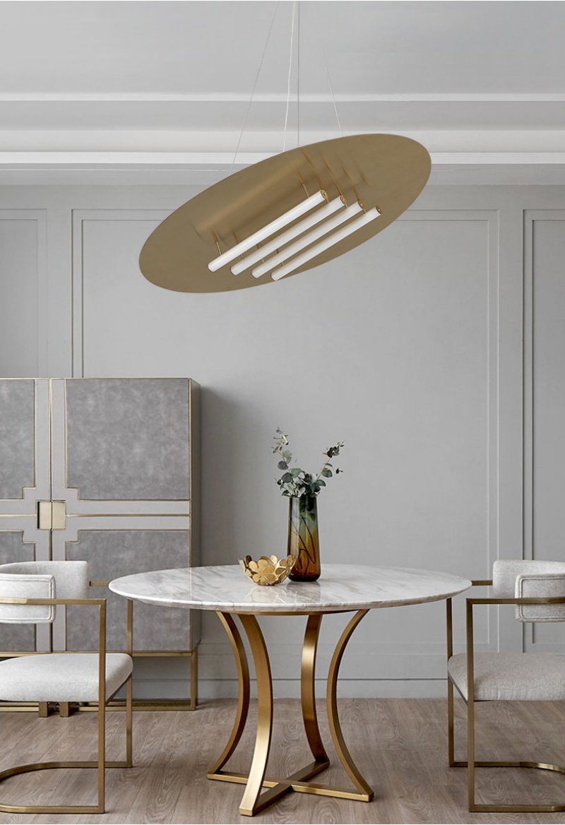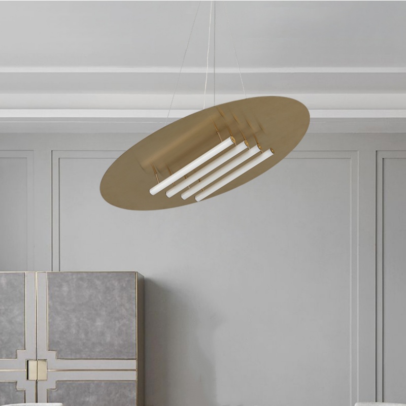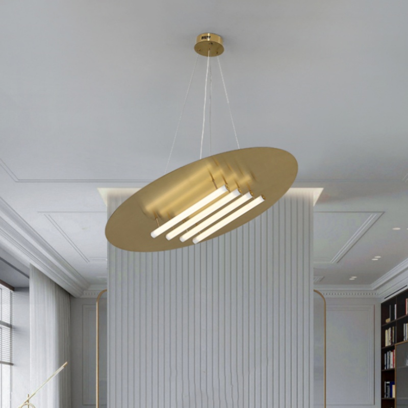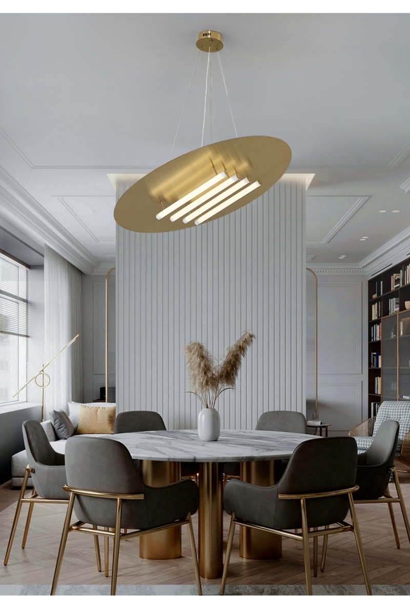 - Industrial Chic with a Linear Glow: The Stainless Steel Titanium Acrylic Pendant Lamp defines modern ceiling art with its striking circular form and integrated acrylic light tubes. This architectural pendant lamp creates a captivating interplay of solid metal and radiant lines, making it a bold focal point for a contemporary living room or a sophisticated hotel lobby. Its clean, geometric design delivers a powerful yet refined statement, ensuring this versatile pendant light seamlessly enhances interiors ranging from minimalist Nordic to industrial-inspired Modern styles.