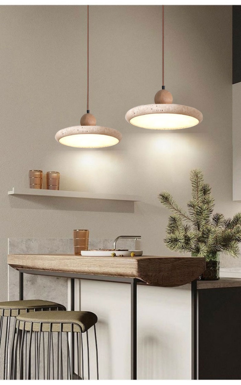 - Premium Materials for Lasting Durability: Crafted with high-quality yellow travertine stone, wood, and metal, this pendant lamp is built for longevity. The natural yellow travertine stone brings character and a unique texture to the lamp’s shade, while the wood and metal components provide added strength and sophistication. Together, these materials ensure that the pendant light remains both a functional and stylish addition to your space.